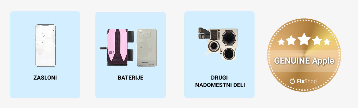 V FixShop-u si prizadevamo ponuditi rešitve za vse potrebe naših strank. Zato nudimo različne kakovostne razrede nadomestnih delov. Z dodajanjem GENUINE Apple delov v našo ponudbo se odzivamo na povpraševanje trga — z zagotavljanjem originalne kakovosti in vseh pripadajočih prednosti.