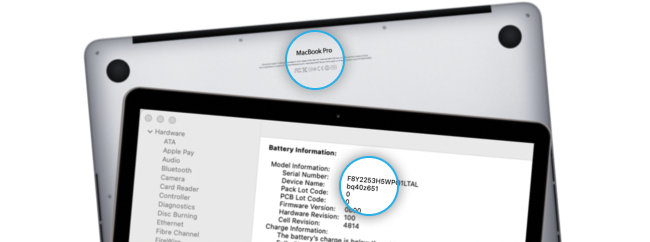 Vaš Mac ponuja več orodij, ki vam ga pomagajo prepoznati. Uporabite serijsko številko, številko modela, identifikator modela (ID modela) in številko EMC, da ugotovite, kateri model MacBook Air/MacBook Pro imate.